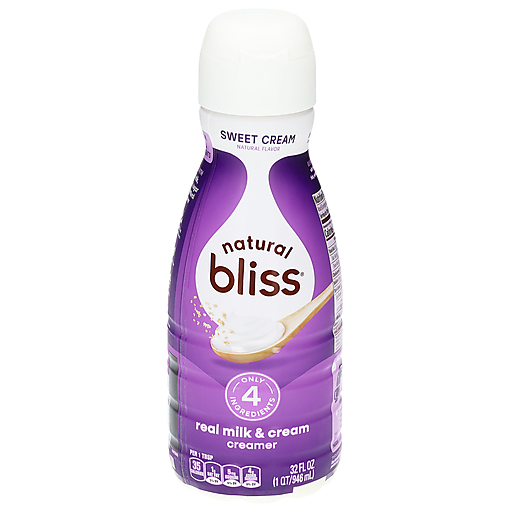 Natural Bliss Sweet Cream Flavored Liquid Coffee Creamer adds naturally delicious goodness to every cup of coffee you pour. This flavored sweet cream creamer contains tasty ingredients for a liquid coffee creamer that starts off the morning right. The flavored creamer is made with only four ingredients, including real milk and cream, and no rBST or other added growth hormones.* Natural Bliss coffee creamer is made with no oils, gums, artificial colors or artificial flavors. This sweet cream coffee creamer is gluten free and carrageenan free. Natural Bliss liquid coffee creamer allows you to add the right amount of sweet cream flavor for an easy way to transform your coffee into flavorful deliciousness, whether it's your morning cup or afternoon pick-me-up. Store this fully recyclable bottle of Natural Bliss dairy creamer in the refrigerator until you're ready to harness the power of bliss in your coffee. *No significant difference has been shown between milk from rBST treated and non-rBST treated cows.