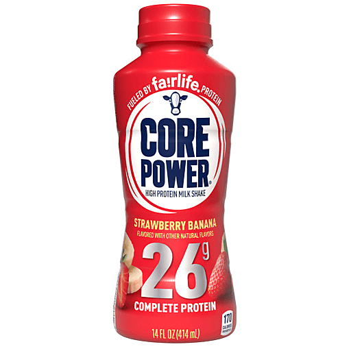 Whether you're working towards a new personal record or you're just trying to stay fit, you should make the most of your workouts, which includes your recovery. That's why Core Power protein shakes are designed to help you refuel, rebuild, rehydrate and recover from your workout. With Core Power Strawberry Banana, you get a protein shake that's packed with 26g of high quality protein, all 9 essential amino acids, electrolytes and a delicious blend of strawberry and banana. Its high quality protein from fairlife ultra-filtered milk helps you recover after each and every workout. Fueled by fairlife ultra-filtered milk, Core Power is about helping you recover after a workout so you feel good and can tackle the rest of your day. Champion Your Recovery.
