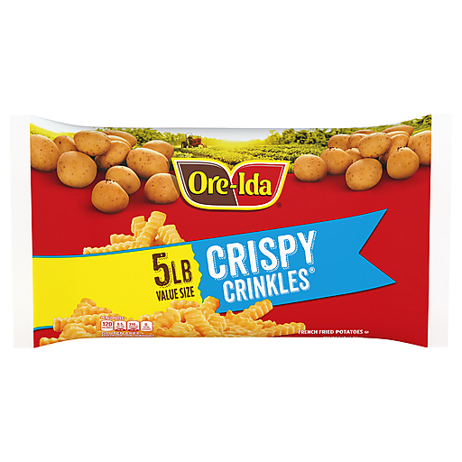 Crispy outside, fluffy inside, every time. Deliciously predictable, that’s Ore-Ida. Ore-Ida Crispy Crinkles French Fried Potatoes make it easy to enjoy delicious fries at home. The zigzagged shape adds extra crunch to each bite. Our gluten-free fries offer a crispy crinkle cut outside with a fluffy inside for the perfect blend of textures to make your next family meal a success. Toss frozen fries on a baking sheet to bake them in the oven according to package instructions for warm golden fries. An American classic, our crinkle fries are great for dipping. Serve up the traditional burger and fries, or get creative with loaded fries topped with cheese and bacon. Our crinkle cut fries come sealed in a 5-pound bag to help lock in flavor. Ore-Ida believes that taste and quality matter and it has since 1952. That’s why we work tirelessly to bring you and your family perfect-tasting potatoes.