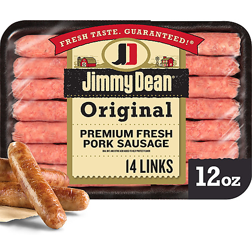 Enjoy a classic and easy breakfast made with fresh ingredients. Jimmy Dean® Original Premium Fresh Pork Sausage Links are perfectly seasoned with a signature blend of spices. These pork sausage links contain no artificial flavors or colors and are gluten-free. They can be easily prepared on the stovetop and served with eggs and pancakes for a hearty breakfast. Add savory flavor to casseroles, breakfast burritos, or omelets. Each serving of three links provides 11 grams of protein. Every 12-ounce pack contains approximately 4.5 servings. Keep frozen until ready to prepare. Ready when needed, these fresh pork sausage links bring savory flavor to the day.